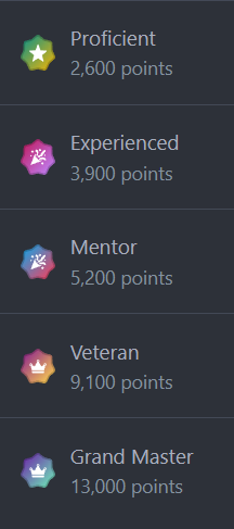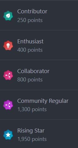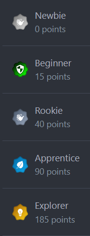 Upon registering on the forums, your initial rank was "Newbie" and you possessed a solitary point. However, as you actively engaged in the forums, you accumulated points and your rank progressed accordingly. Additionally, the Admins and Moderators have the authority to grant points to individuals who have demonstrated exceptional participation. Furthermore, specific badges may be bestowed upon individuals by the Admins and Moderators for their exceptional contributions.