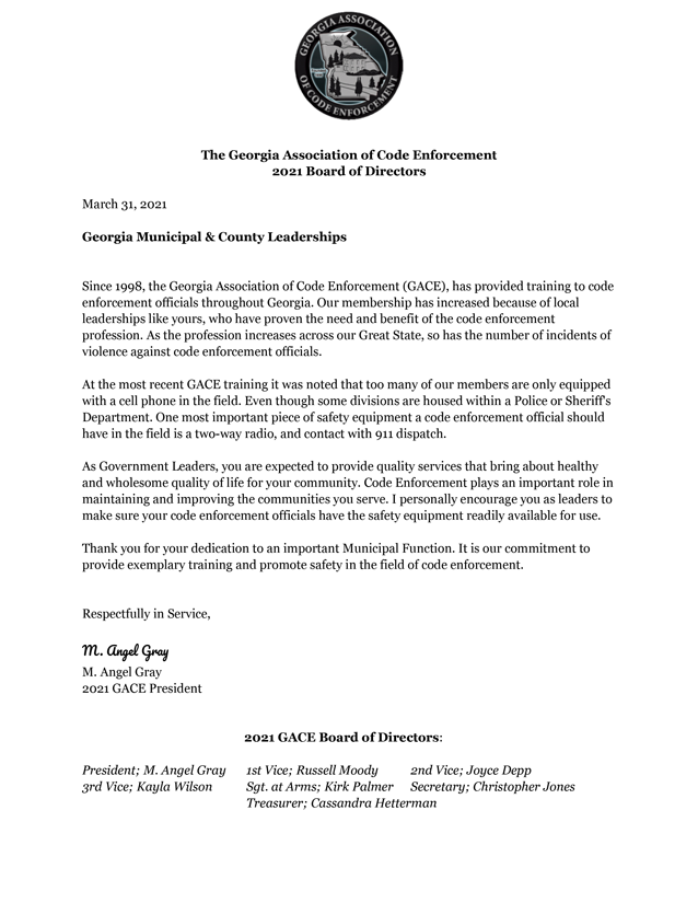 Notice to all members: Please provide a copy of this letter to your Municipal or Local Government Leadership
