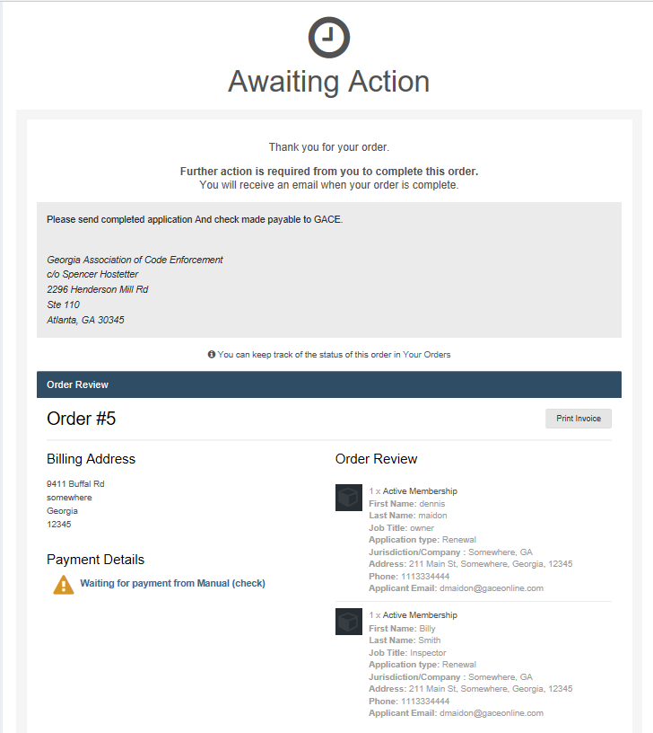 7. If all the information is correct, Select either "Manual (Check)", "PayPal (PayPal Site)" or "PayPal (Direct Card Entry)" as your method of payment. Then click the "Place Order and Pay" button. In this case, payment is to be made by check. if you chose "PayPal (Check)" as the method of payment, you will be taken to the PayPal login screen. If you chose "PayPal (Direct Card Entry", you will be taken to a PayPal screen to enter your credit card information.